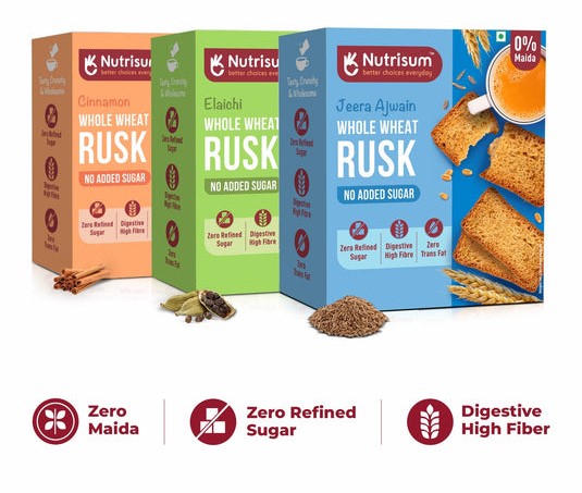 Experience the perfect crunch with our healthy rusks, made from whole grains and completely free of added sugar. Fortified with prebiotic fiber, these rusks support your digestive health while delivering a delicious, guilt-free snack. Available in three flavorful varieties: