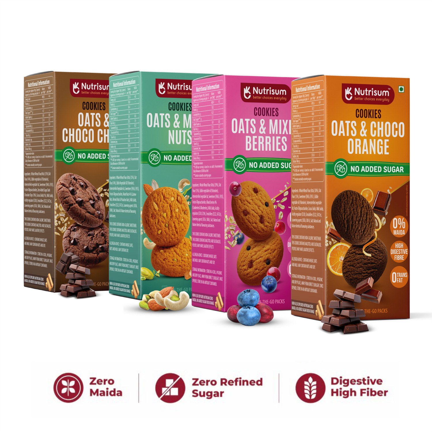 Indulge in our wholesome Oats Cookies, made with whole grains, zero trans fats, and absolutely no refined sugar. These crunchy delights are fortified with prebiotic fiber for a healthy gut, offering the perfect balance of nutrition and flavor. Available in three delectable flavors:
