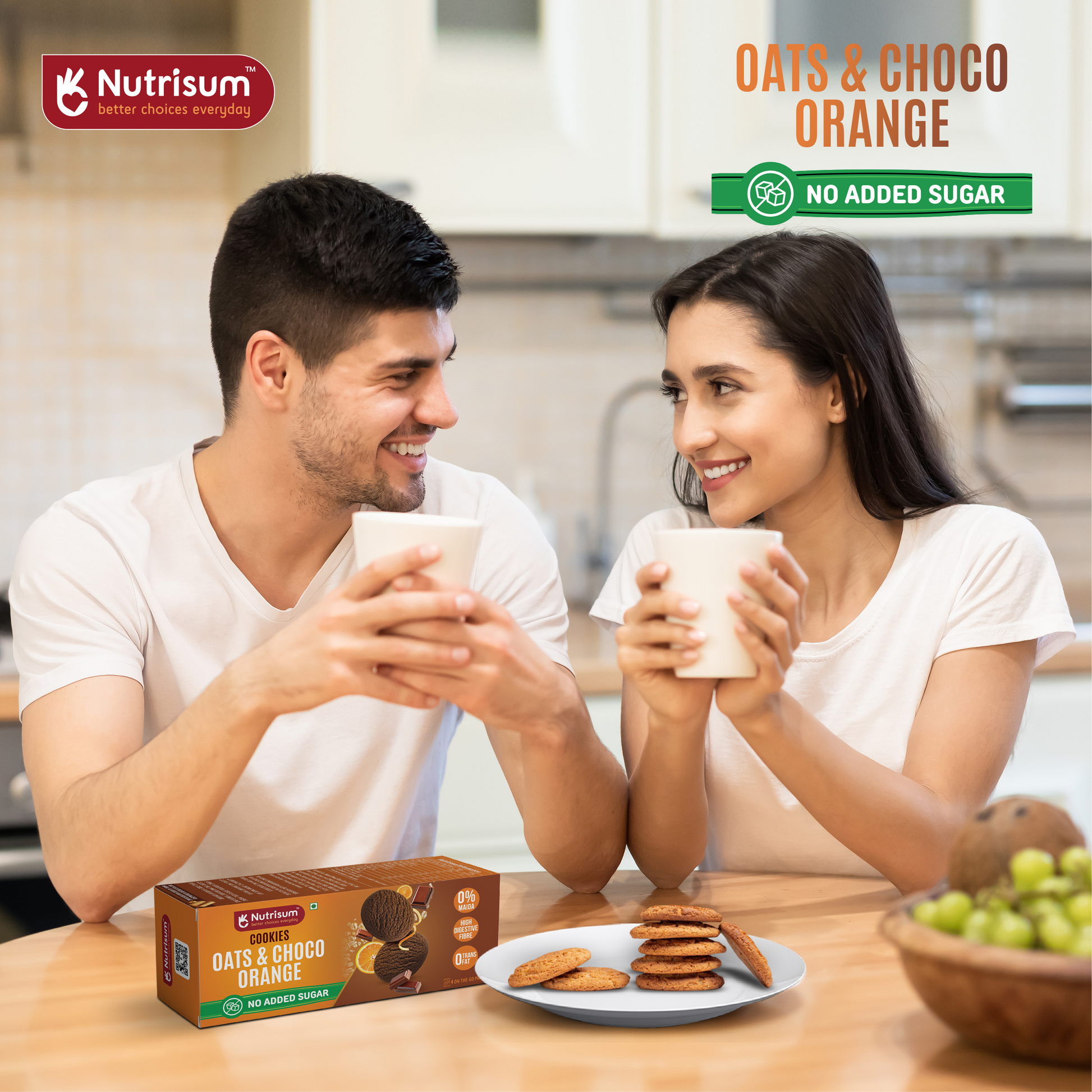 Indulge in the decadent delight of Nutrisum Chocolate Orange Oats Cookies. Bursting with the rich essence of velvety chocolate and tangy orange, each 70 gm pack offers a sensational fusion of flavors that tantalize your taste buds with every bite. Perfectly balanced between sweet indulgence and zesty freshness, these cookies provide a luxurious treat that satisfies cravings and elevates snack time to a whole new level of enjoyment. Whether enjoyed with a cup of coffee, as an afternoon pick-me-up, or simply to satisfy your sweet tooth, Nutrisum Chocolate Orange Oats Cookies deliver pure bliss in every mouthful.