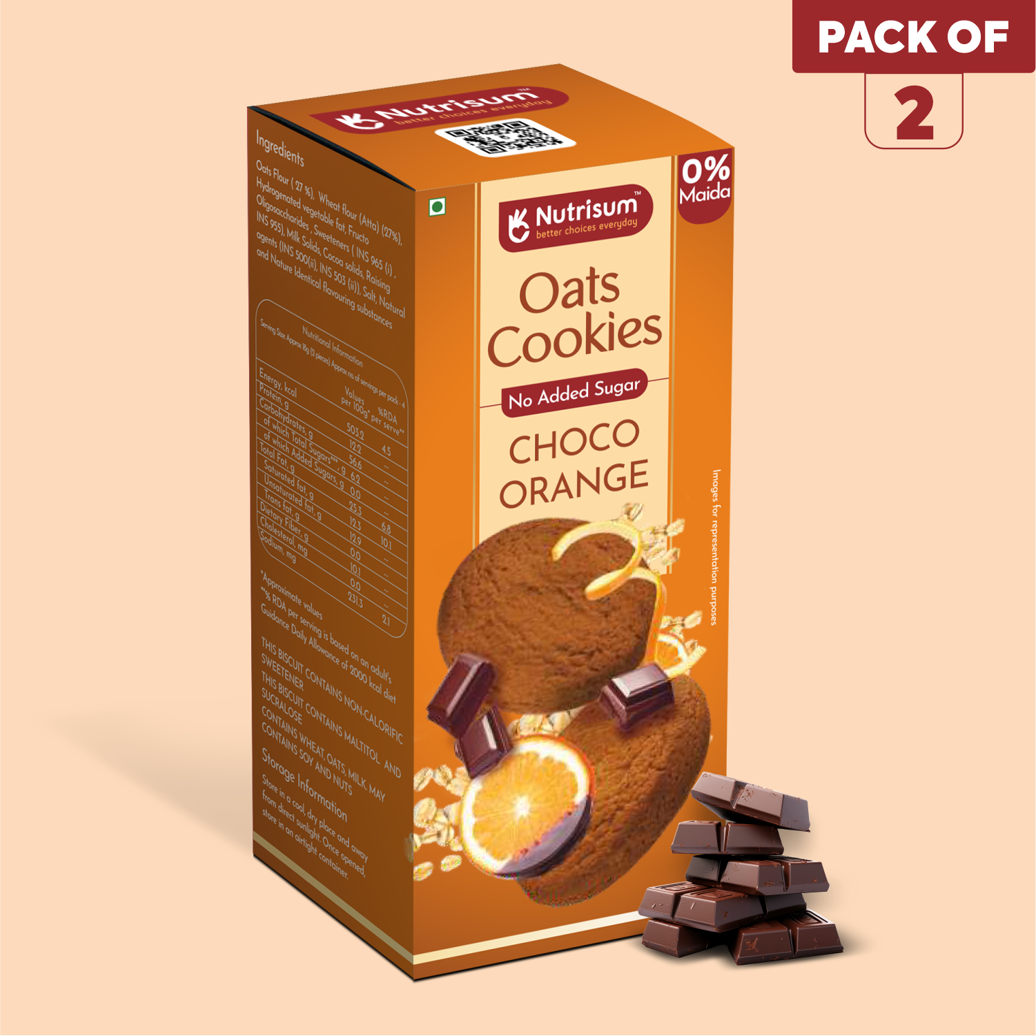 Experience pure decadence with Nutrisum Chocolate Orange Oats Cookies. This exquisite treat combines the richness of premium chocolate with the tangy zest of fresh oranges, encapsulated in each 70 gm pack. Indulge in the luxurious flavors that dance on your palate, offering a symphony of sweetness and citrusy delight. These cookies are not just a snack; they're a journey into blissful indulgence, perfect for elevating your mood and satisfying your cravings with every sumptuous bite. Treat yourself to the ultimate gourmet experience and discover why Nutrisum Chocolate Orange Oats Cookies are the epitome of refined indulgence.