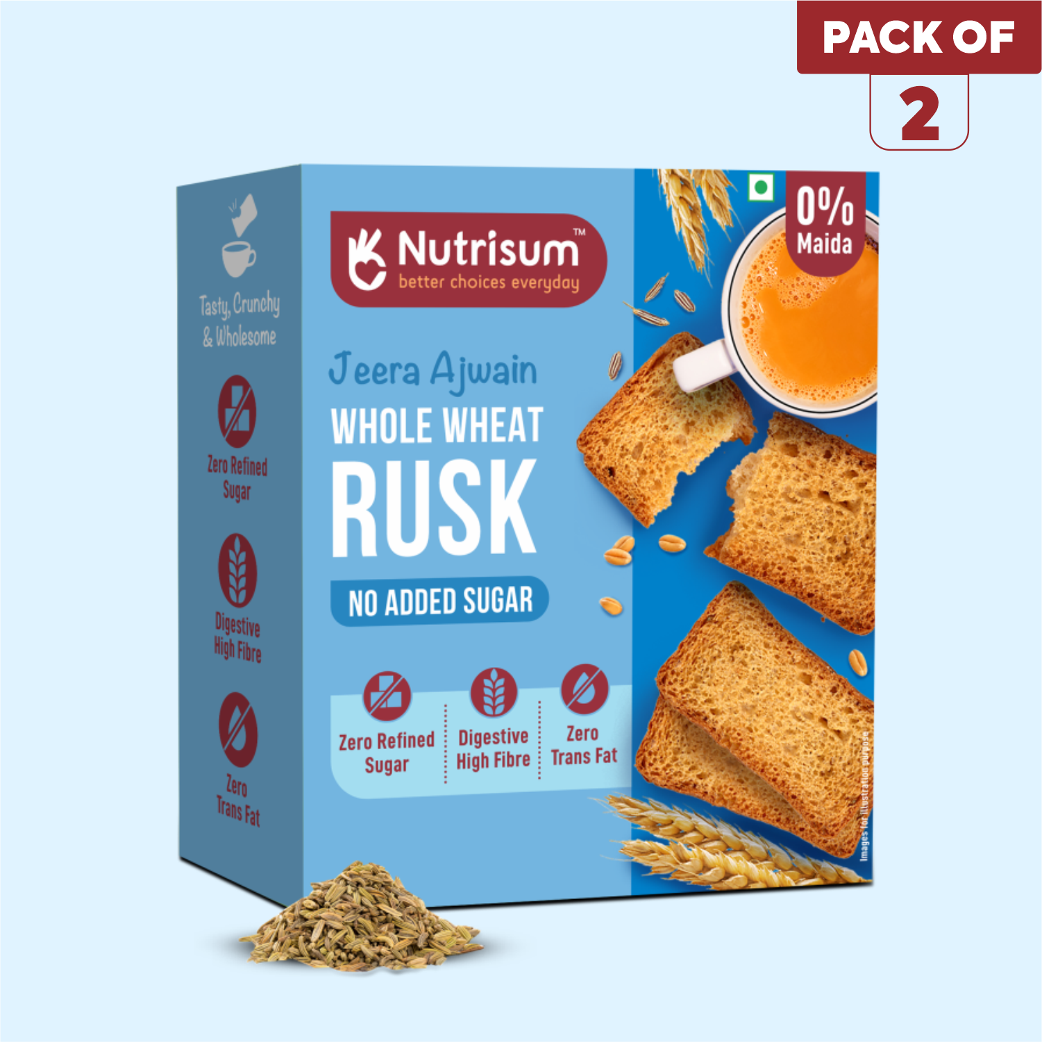 Natural ingredients and a subtle ajwain and jeera flavor make these rusks great.