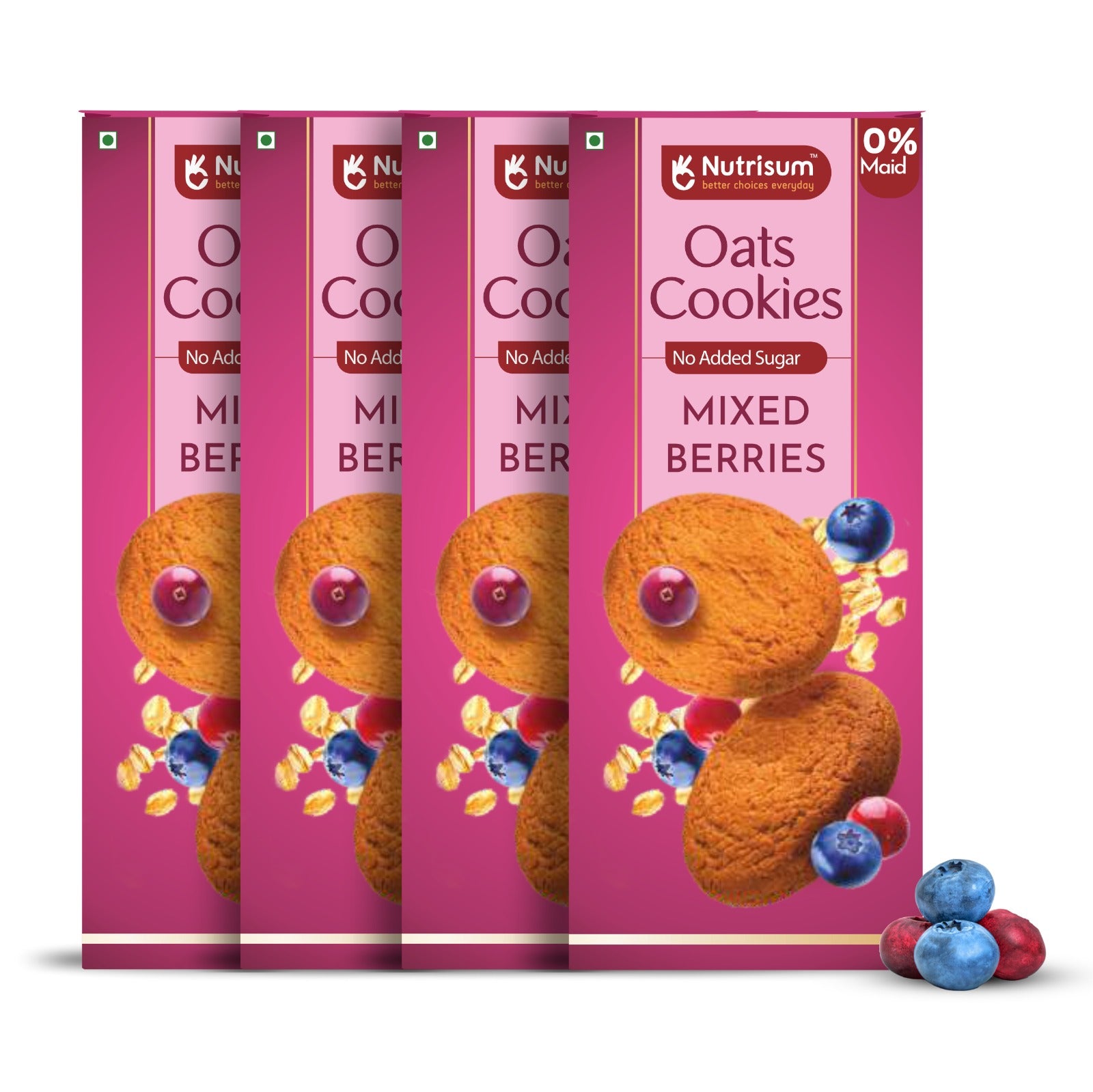Savor the delightful and nutritious Nutrisum Mixed Berries Oats Cookies. Each 70 gm pack features wholesome oats and a blend of mixed berries, offering a perfect combination of sweetness and well-being. Whether enjoyed as a quick snack or a guilt-free indulgence, these cookies provide a tasty way to satisfy cravings and maintain energy levels throughout the day.