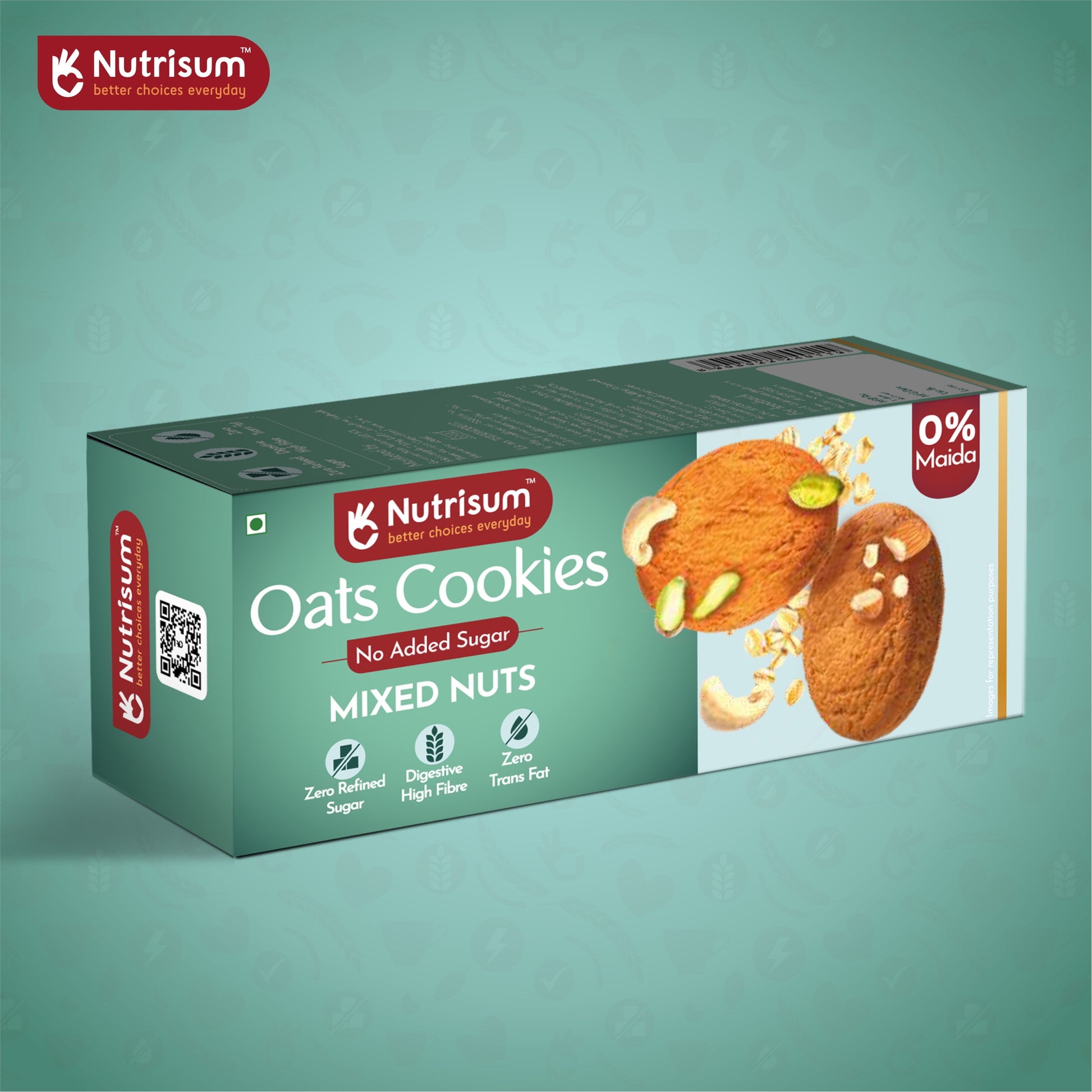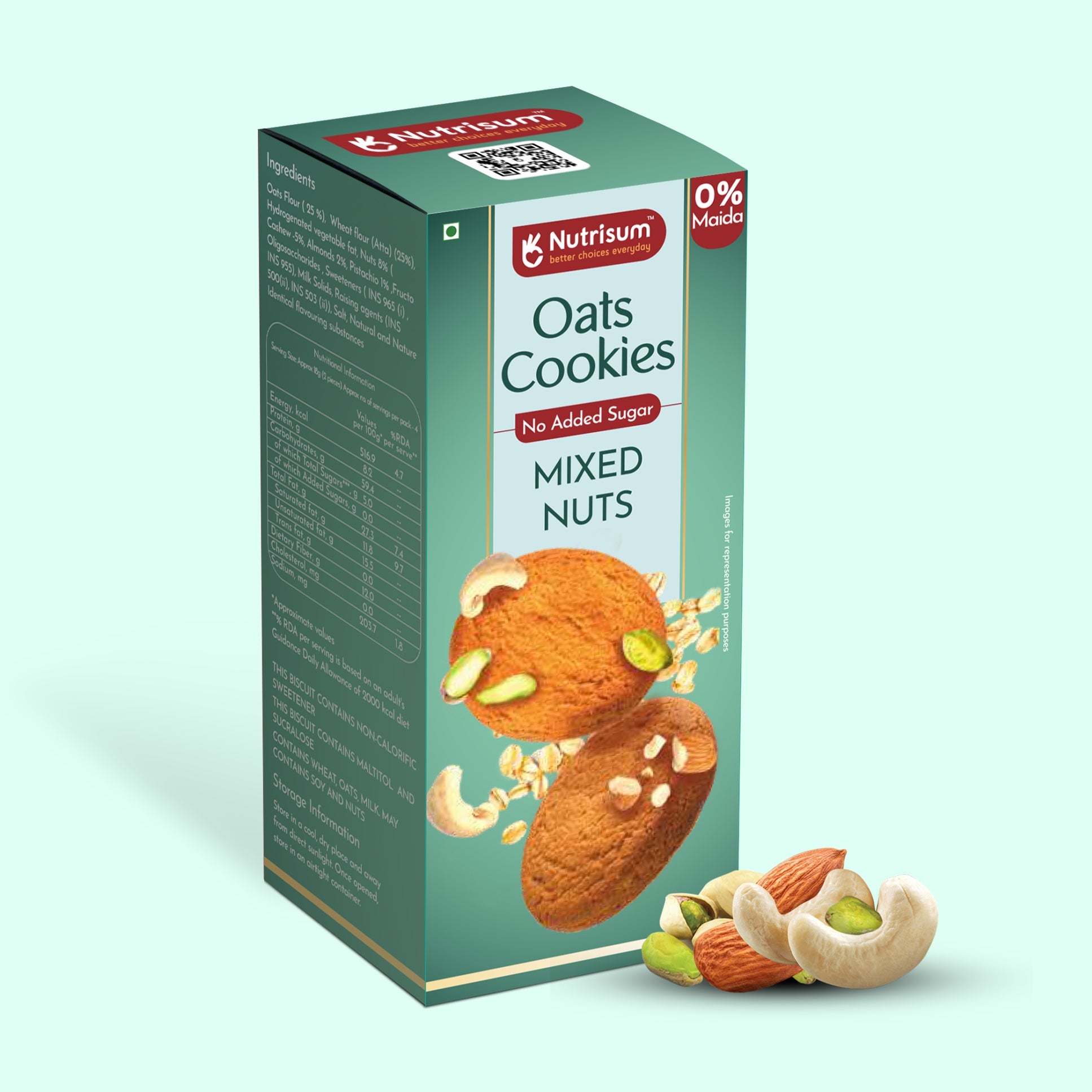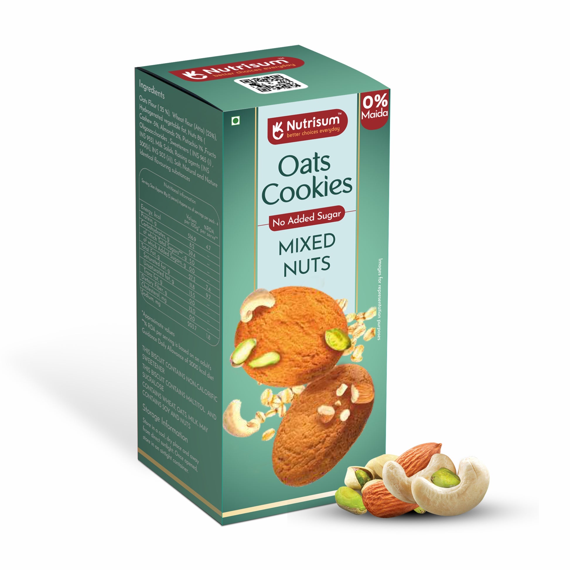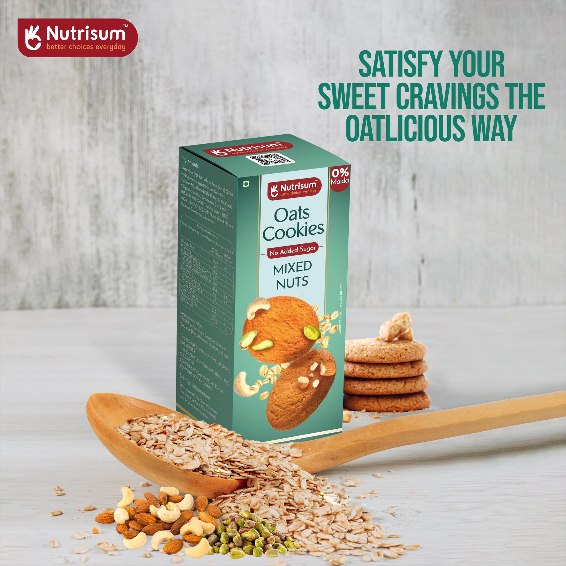 Enjoy a wholesome and delicious snack with Nutrisum Mixed Nuts Oats Cookies. Each 70 gm pack is filled with the goodness of crunchy nuts and hearty oats, providing a perfect blend of taste and nutrition. Ideal for a quick bite or a healthy treat, these cookies offer a delightful way to satisfy your cravings while staying energized throughout the day.